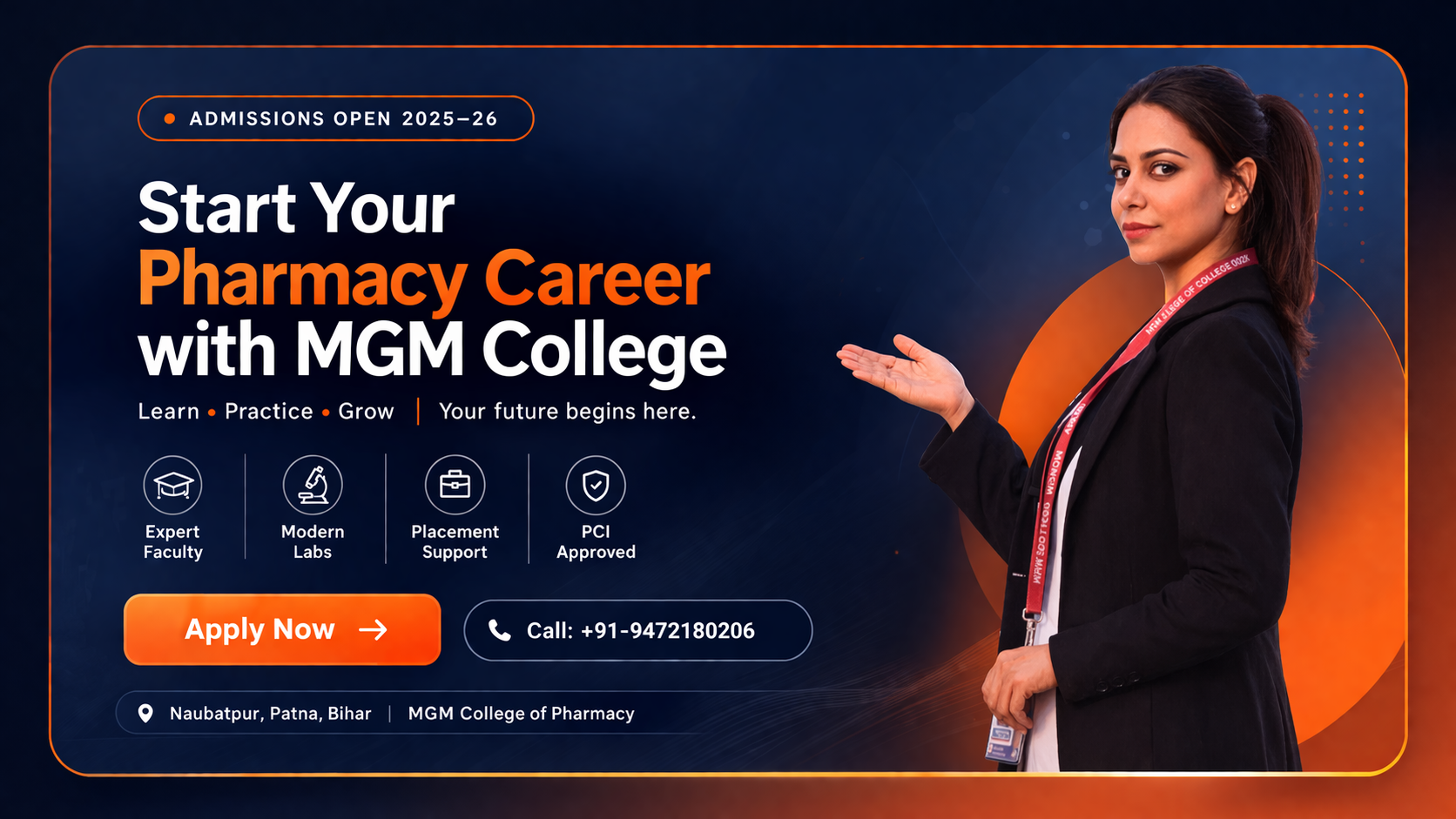 Join MGM College of Pharmacy, Patna and gain industry-ready skills, expert guidance, and excellent career opportunities.